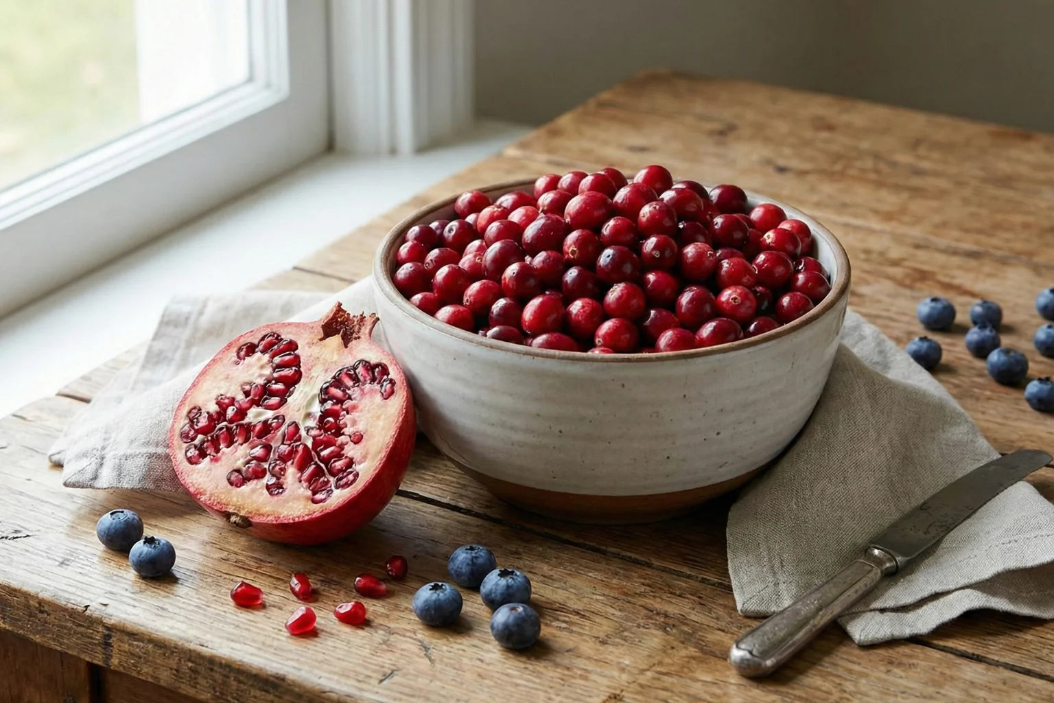 Proantocianidine del mirtillo rosso, ellagitannini della melagrana e polifenoli del mirtillo impediscono ai batteri di aderire alle superfici dei denti — uno scudo protettivo naturale e triplo.